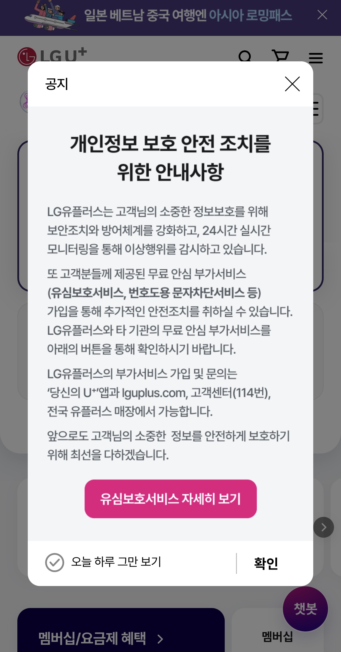 🔐 1. 무료 보안 서비스 안내 (당신의 U+ 앱 등에서 신청 가능)