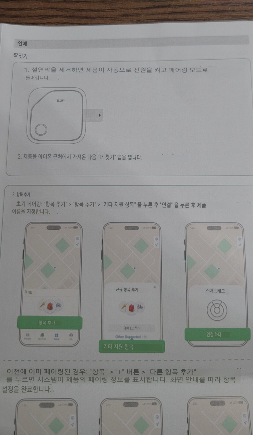 6. 유그린 스마트 태그 설명서 번역 사진