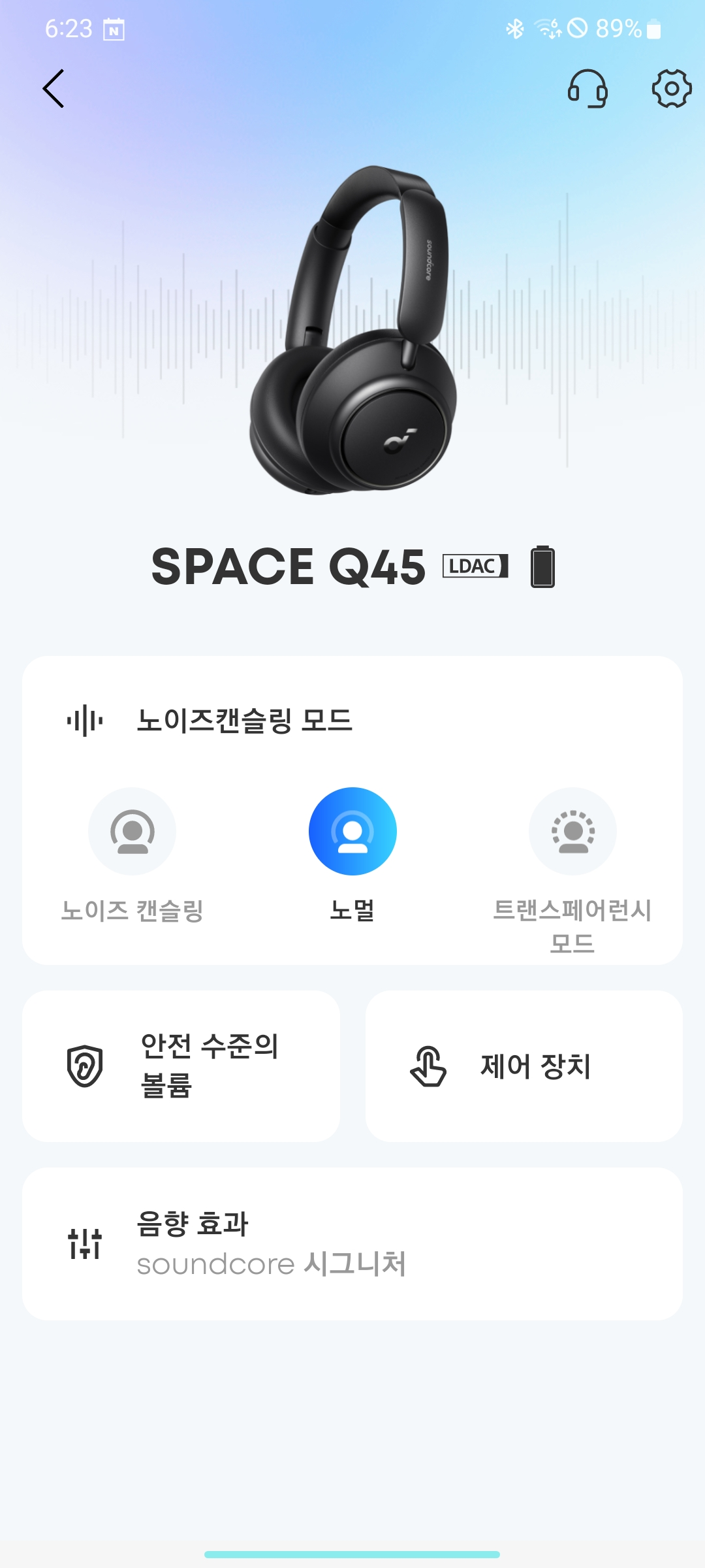 앤커 사운드코어 스페이스 Q45는 뛰어난 노이즈 캔슬링 성능을 제공하여 다양한 환경에서 음악에 집중할 수 있도록 도와줍니다.