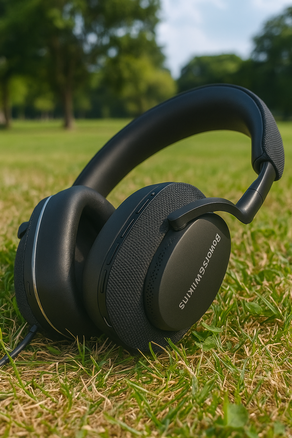 착용감 또한 인상적입니다. 메모리폼 이어컵은 귀를 부드럽게 감싸주며, 장시간 착용 시에도 무게감이 거의 느껴지지 않습니다. 특히 정숙한 실내에서의 존재감 있는 B&W의 긴 로그로 명품의 이미지를 엿볼 수 있습니다.