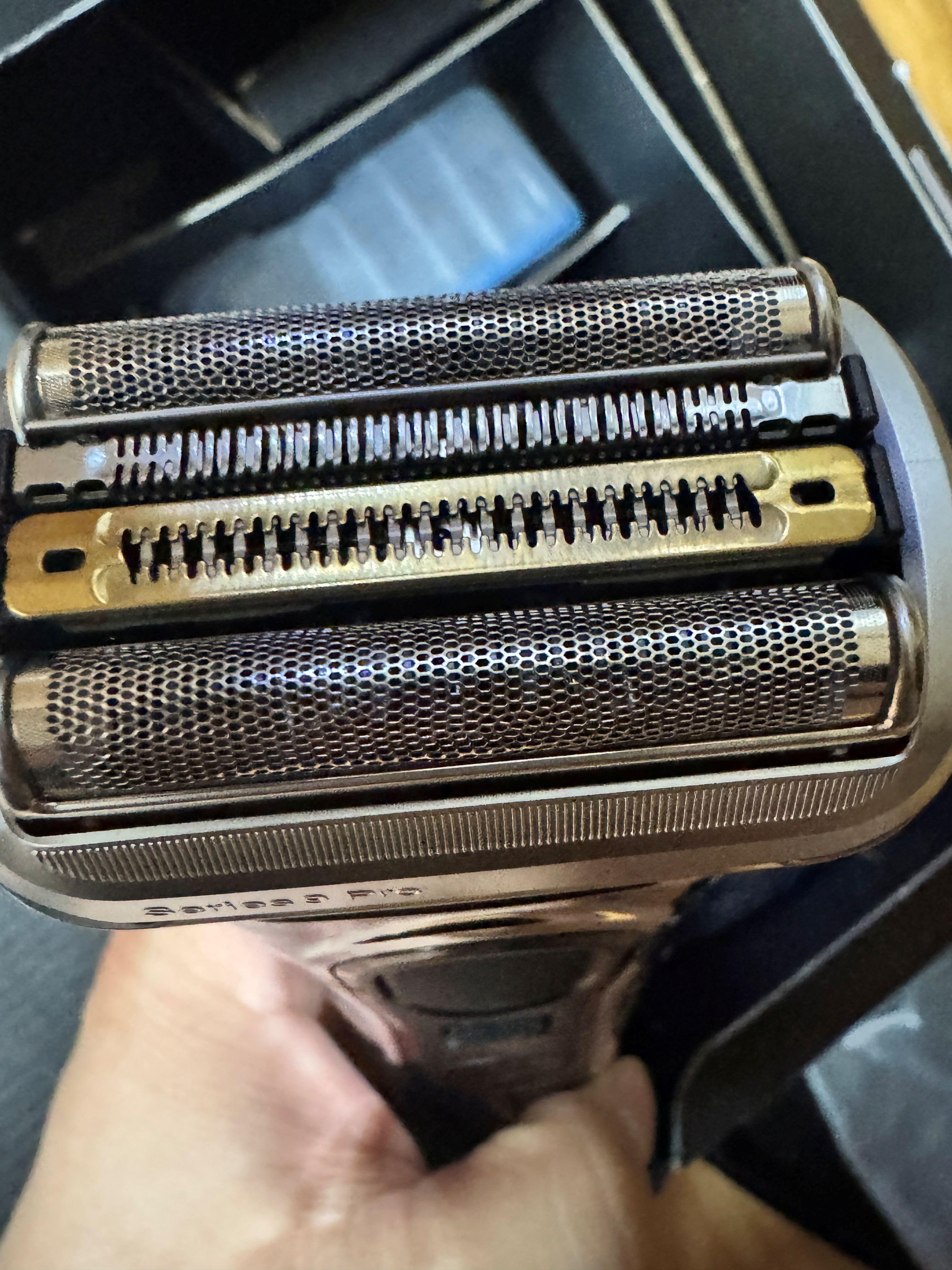 뒷부분에 트리머가 있는데 뒤쪽 목 쪽에 잔털이나 얼굴 옆쪽 구레나룻에 매우 잘 면도되어 밑에 사진 보시면 9시리즈 플러스는 트리머가 면도기 뒤쪽에 같이 있어 편리합니다.