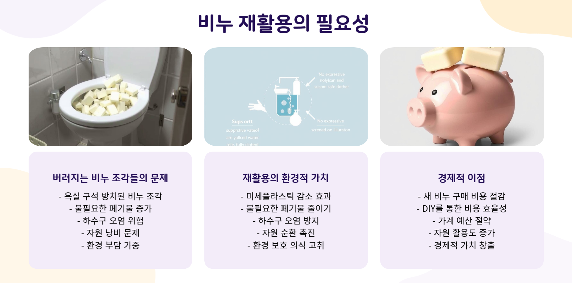 비누는 플라스틱 포장지나 합성 세제에 비해 친환경적이지만, 작은 조각으로 버려질 때 결국 쓰레기가 됩니다. 녹은 비누를 끝까지 사용하면 불필요한 폐기물을 줄이고, 하수구를 오염시키는 미세플라스틱 유출도 막을 수 있어요.