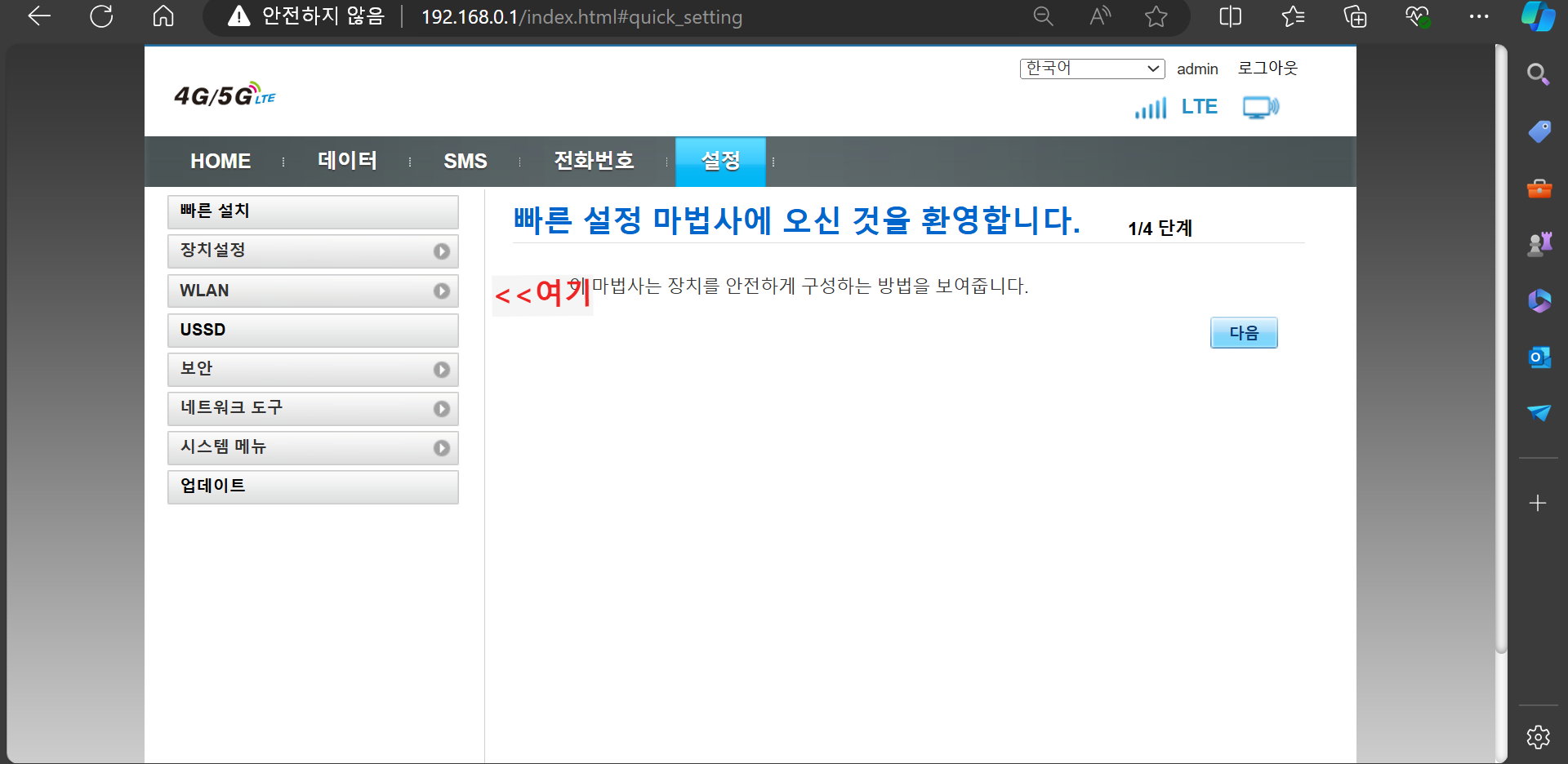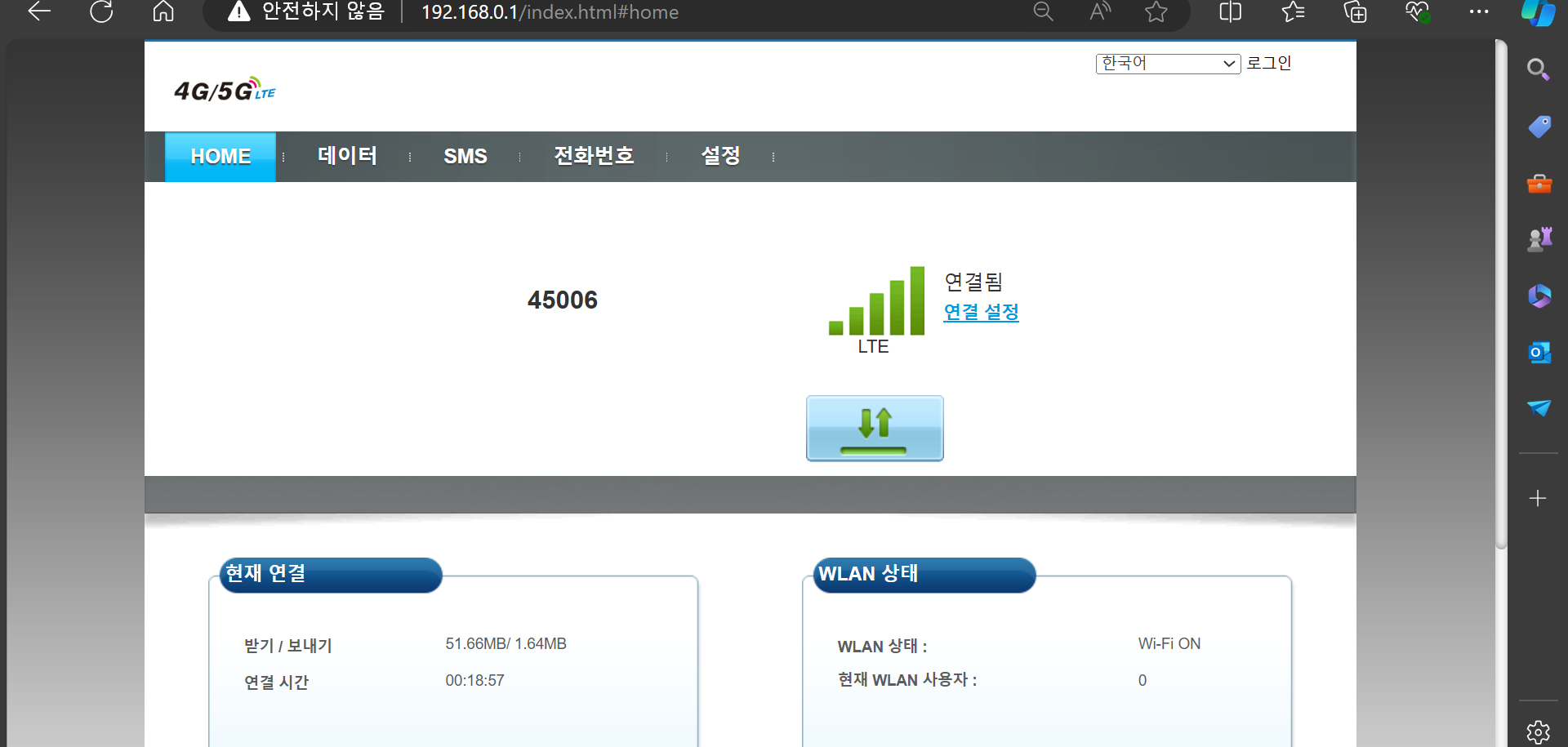 여러분들은 처음 들어오시면 로그인하라고 뜰 겁니다. 그럼 아이디는 건들지 말고 비밀번호를 admin이라고 입력하고 로그인하시면 위와 같이 설정할 수 있는 창과 와이파이를 설정 할 수 있는 장이 뜹니다.