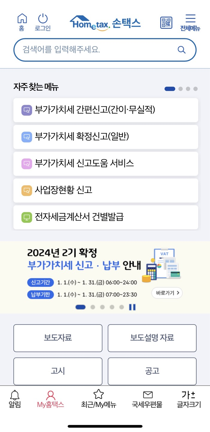 1) 홈택스 로그인