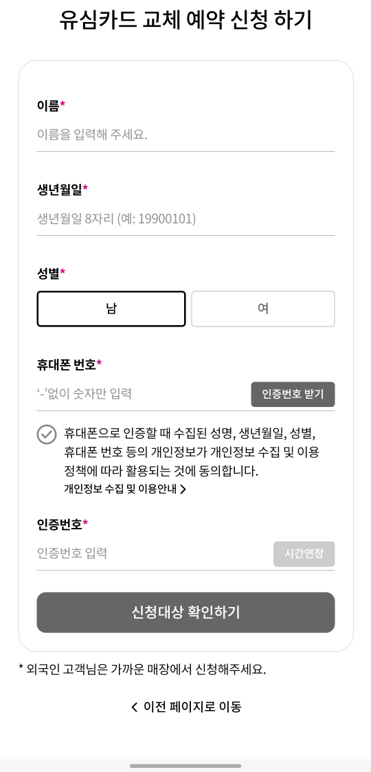 2. 유심을 인터넷으로 예약하여 무료로 매장에서 받는 과정입니다. 유심카드 무료로 받는 것은 2023년 기준 3월 1일~3월 중순까지입니다.