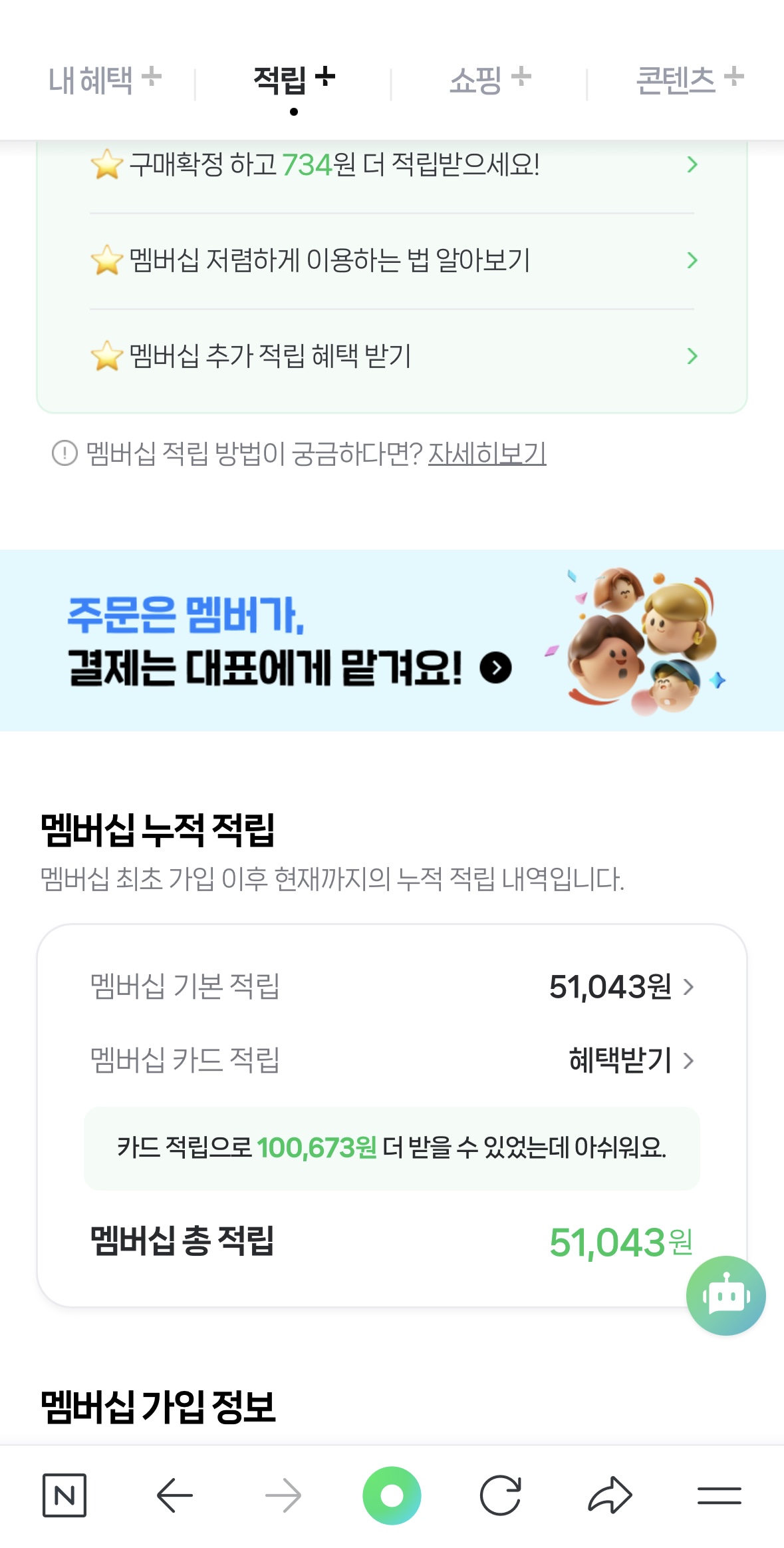 - 네이버페이 포인트를 사용하여 멤버십 결제 시 추가 적립 혜택