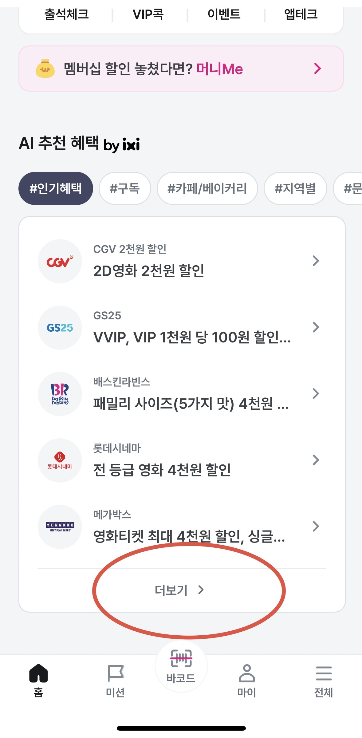 멤버십 혜택 메뉴 이동